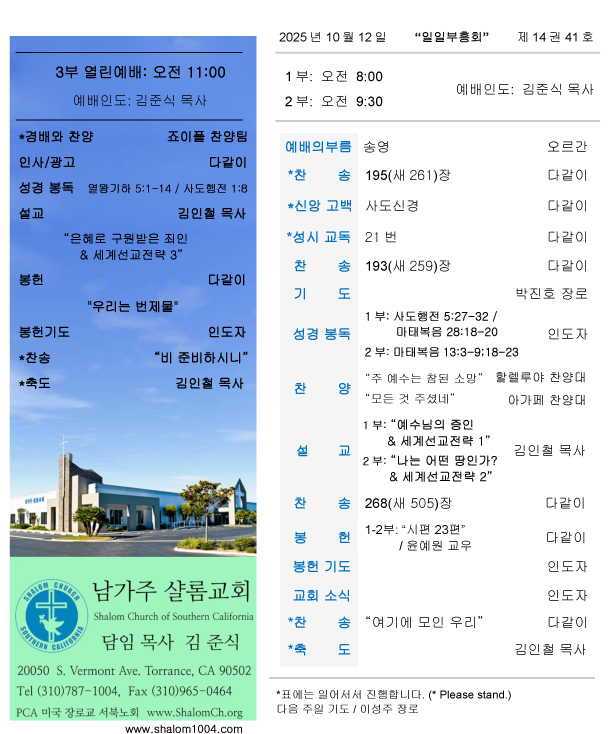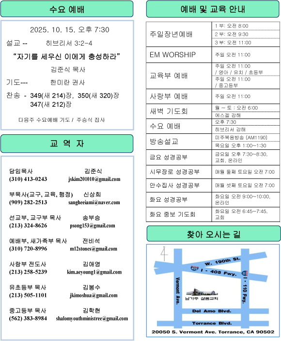 남가주샬롬교회 내규