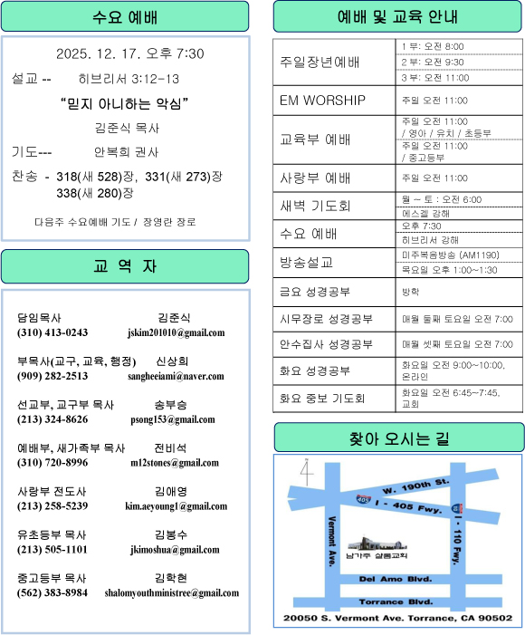 남가주샬롬교회 내규