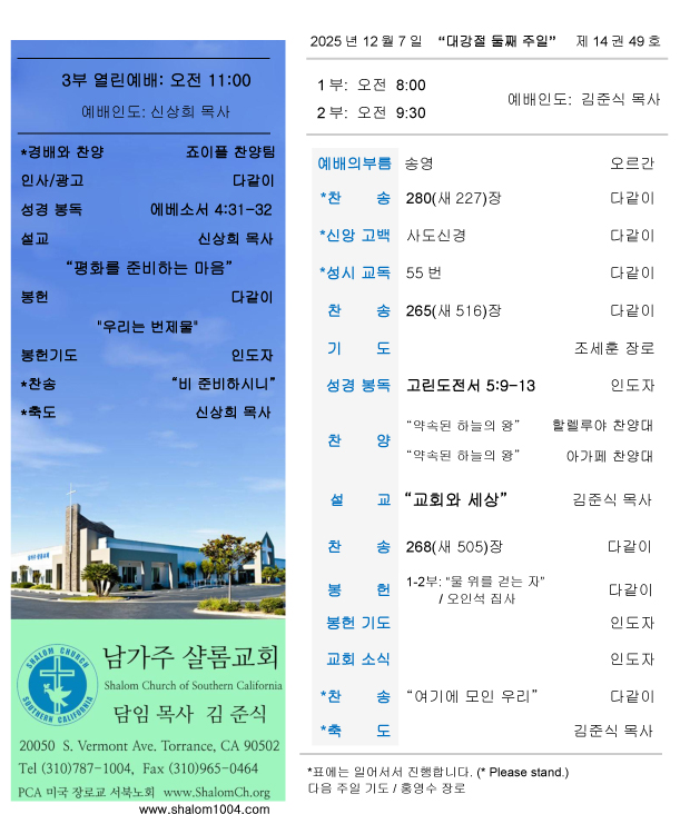남가주샬롬교회 내규