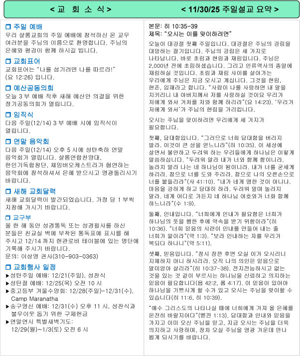 주일 설교 요약