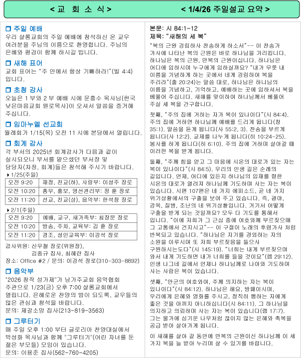 남가주샬롬교회 내규