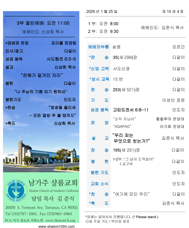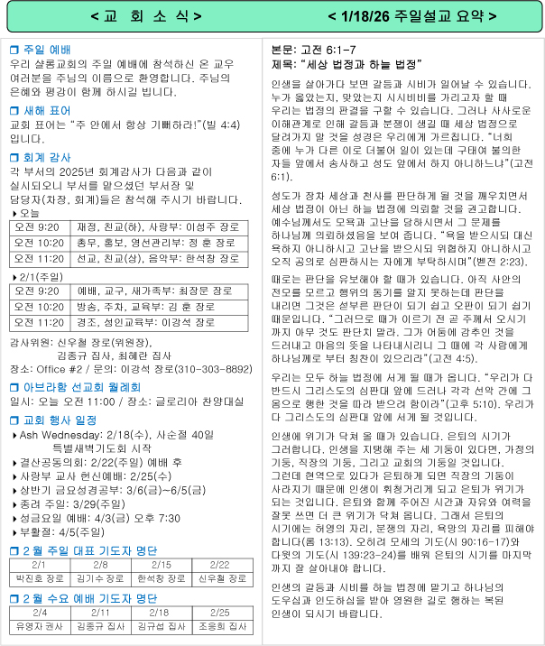 남가주샬롬교회 내규