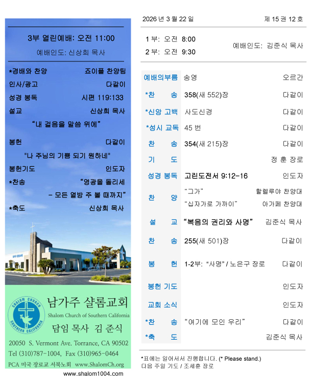 • 남가주샬롬교회 내규